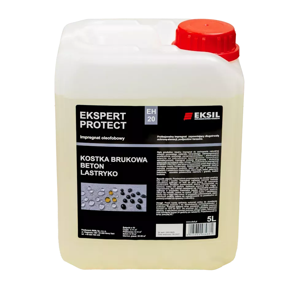 Impregnat Ekspert Protect EH-20 to wysokiej jakości, wodny impregnat oparty na silanach, przeznaczony do ochrony porowatych materiałów mineralnych: betonu, cegły, klinkieru, piaskowca, kamienia naturalnego, szorstkiego marmuru lub granitu. Produkt zabezpiecza powierzchnie przed wodą i olejami, tworząc niewidoczną, przepuszczalną dla pary powłokę hydro- i oleofobową. Dzięki temu elewacje, tarasy, ściany czy inne powierzchnie mineralne pozostają dłużej czyste, są odporne na wilgoć, zabrudzenia, wykwity i rozwój mikroorganizmów.