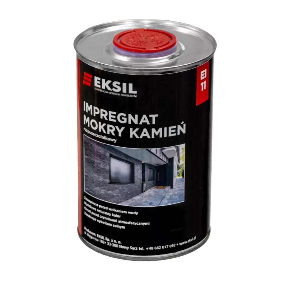 Impregnat Mokry Kamień EI-11 to wysokiej jakości, rozpuszczalnikowy preparat marki Eksil, przeznaczony do ochrony i dekoracji powierzchni kamiennych. Preparat tworzy charakterystyczny efekt mokrego kamienia, który uwydatnia naturalne kolory, pogłębia odcień i poprawia walory estetyczne materiału.