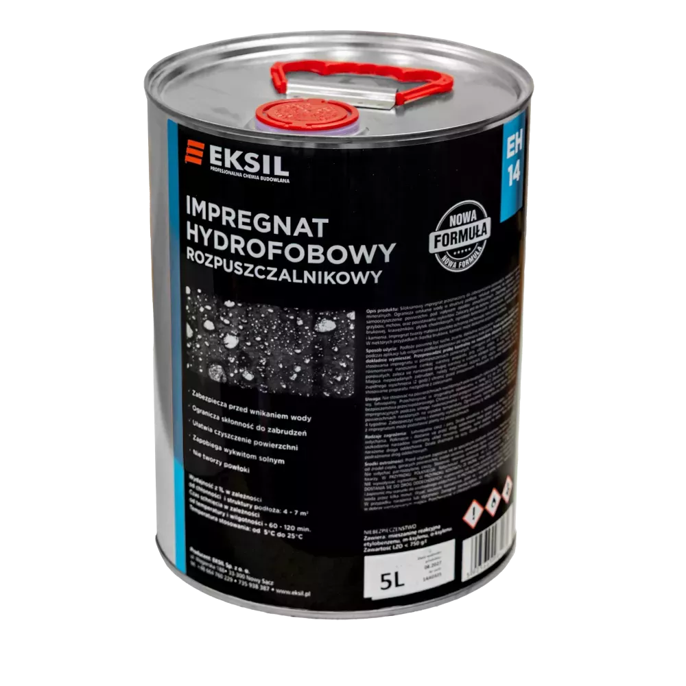 EH 14 Impregnat hydrofobowy o wysokiej zdolności penetracji zapewnia skuteczną impregnację powierzchni mineralnych. Preparat hydrofobowy do betonu tworzy niewidoczną, ale skuteczną barierę ochronną. W niektórych przypadkach może zmatowić impregnowaną powierzchnie. Utworzona warstwa zapobiega wnikaniu wody, powstawaniu wykwitów solnych, wszelkiego rodzaju grzybów i pleśni.